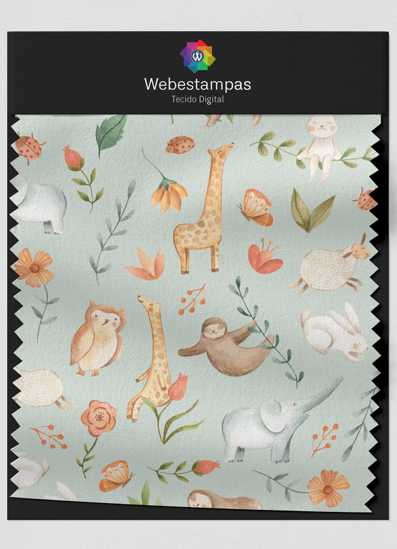 Tecido Veludo Estampa Digital Bichinhos na Natureza Fundo Verde 1,55m de Largura