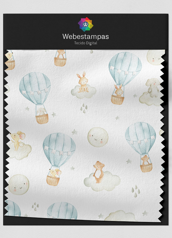Tecido Veludo Estampa Digital Bichinhos no Balão 1,55m de Largura