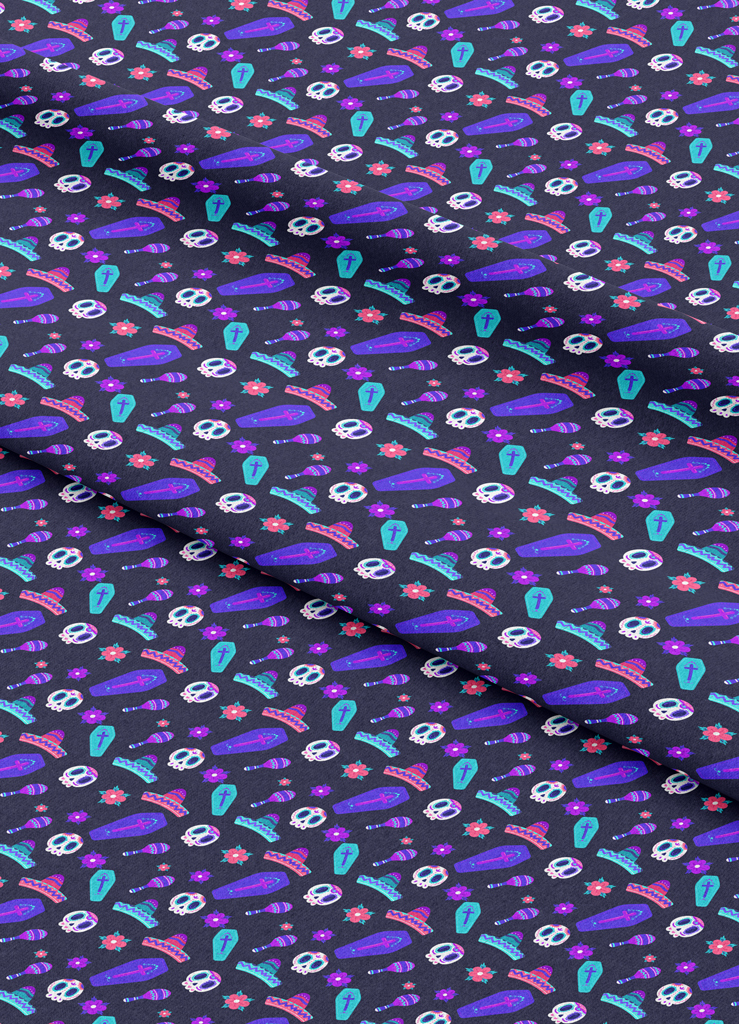 Tecido Veludo Suede Estampa Digital Caveirinhas Fundo Amarelo 1,40m de Largura