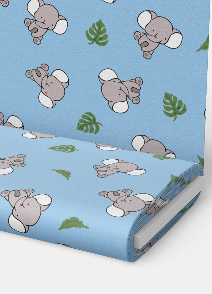 Tecido Veludo Suede Estampa Digital Elefantinho Fundo Azul 1,40m de Largura