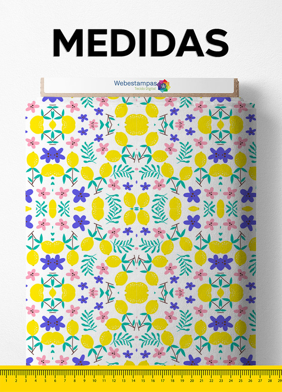Tecido Veludo Estampa Digital Flores e Limões 1,40m de Largura