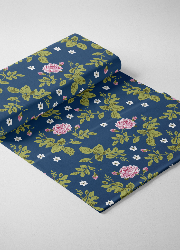 Tecido Veludo Suede Estampa Digital Flores Rosa e Marinho 1,40m de Largura