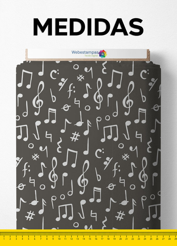 Tecido Veludo Suede Estampa Digital Mini Nota Musical Branco 1,40m de Largura