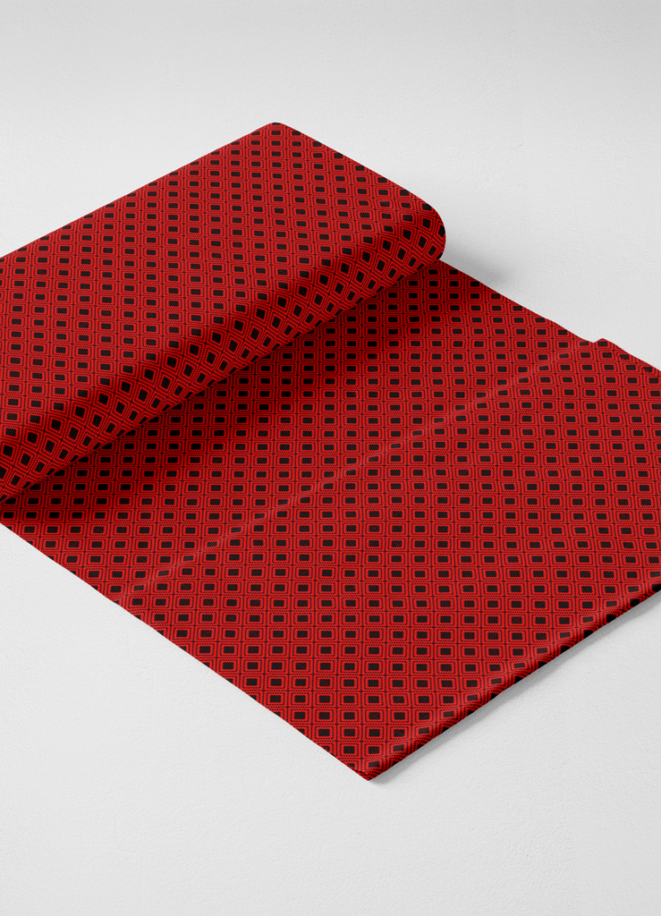 Tecido Veludo Suede Estampa Digital Mini Triagulo Vermelho e Preto 1,40m de Largura