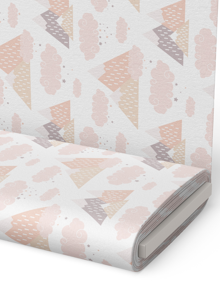 Tecido Veludo Suede Estampa Digital Montanhas e Nuvens Fundo Branco 1,40m de Largura