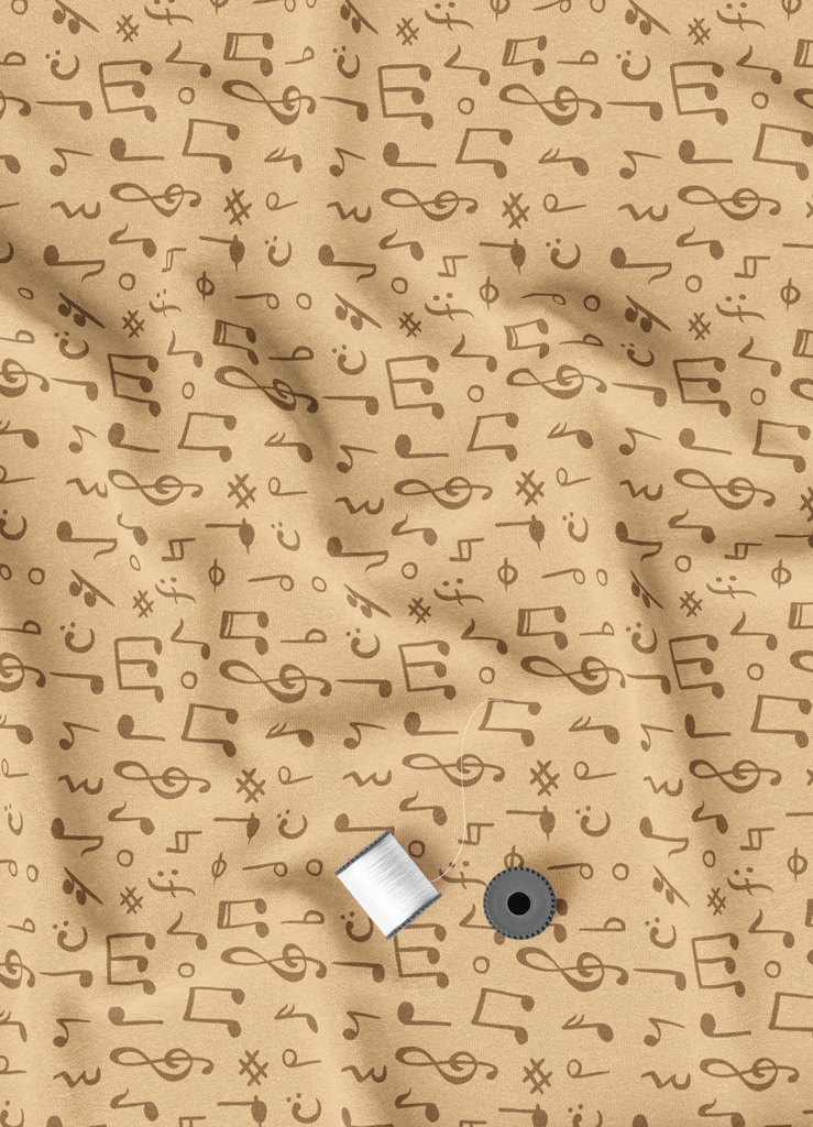 Tecido Veludo Suede Estampa Digital Nota Musical Beje Fundo Palha 1,40m de Largura