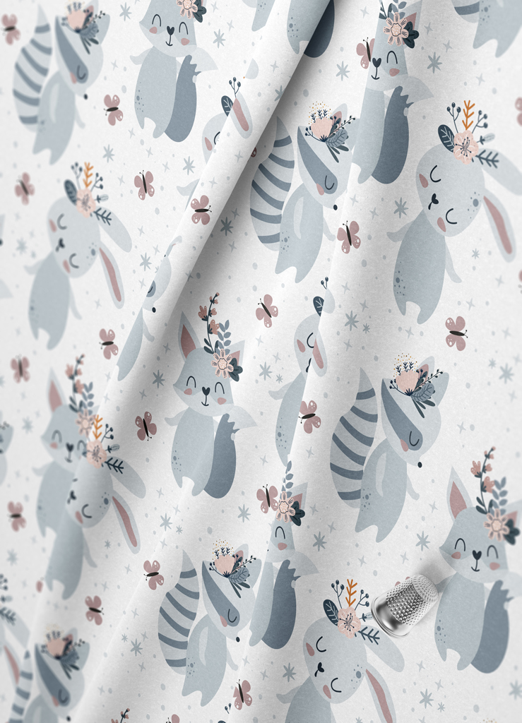 Tecido Veludo Suede Estampa Digital Raposa Cinza 1,40m de Largura