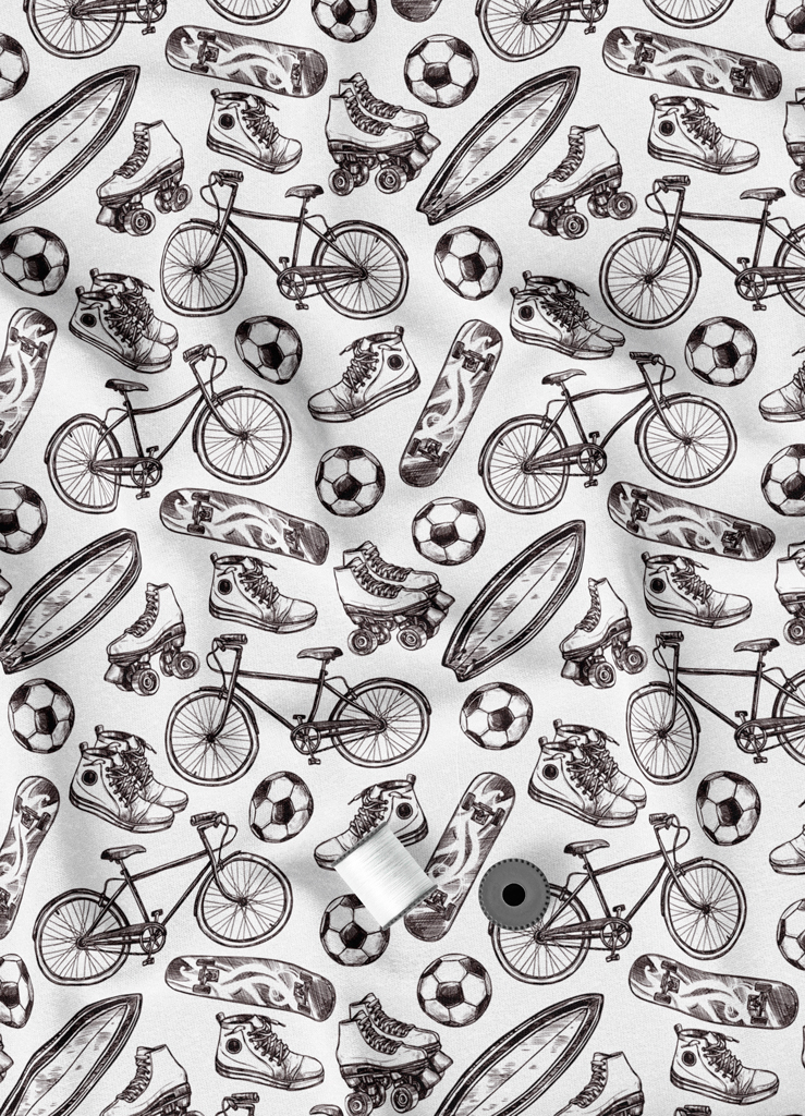 Tecido Veludo Suede Estampa Digital Surf e Skate Preto 1,40m de Largura