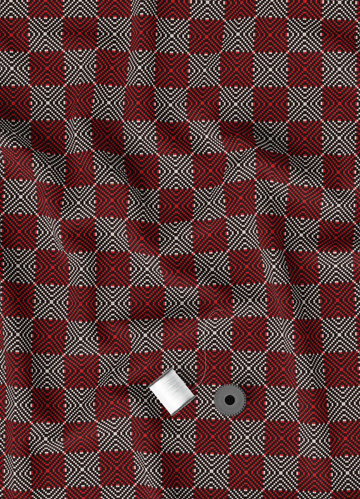 Tecido Veludo Suede Estampa Digital Triangulo e Quadros Vermelho 1,40m de Largura