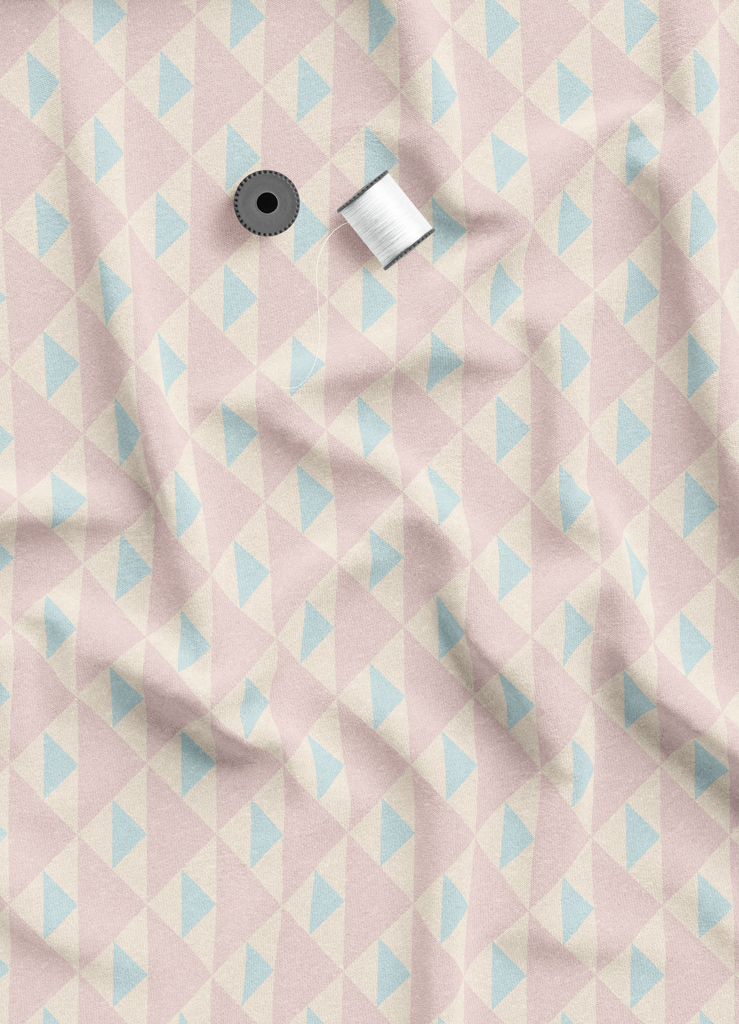 Tecido Veludo Suede Estampa Digital Triângulos Azul e Rose 1,40m de Largura